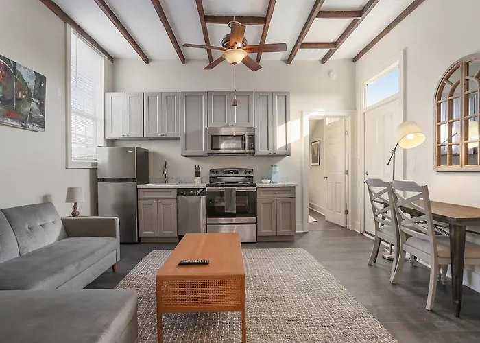 Die 74 m² große Ferienwohnung Cute 1Bed 1Bath 4Blocks From French Q, Near Bourbon St And Steps To Jazz Venues New Orleans befindet sich im Viertel Faubourg Marigny von New Orleans, in einer Entfernung von 5 Minuten zu Fuß vom Voodoo Spiritual Temple. Das Apartment bietet WLAN im ganzen Gebäude.